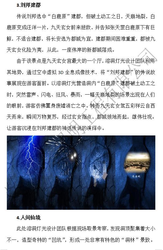 對景區(qū)文化精髓的提煉,如道教文化、三國文化等,巧妙的融入各個景點(diǎn)之中,抓住洞內(nèi)自然景觀特點(diǎn),